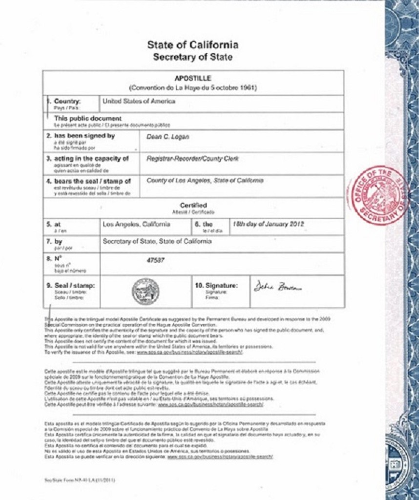 Yes, LA 911 Notary & Apostille has license: 2403509.