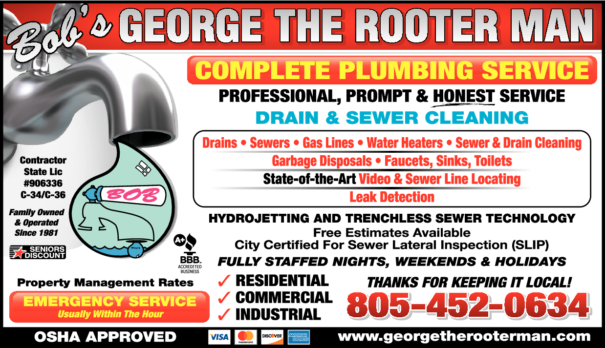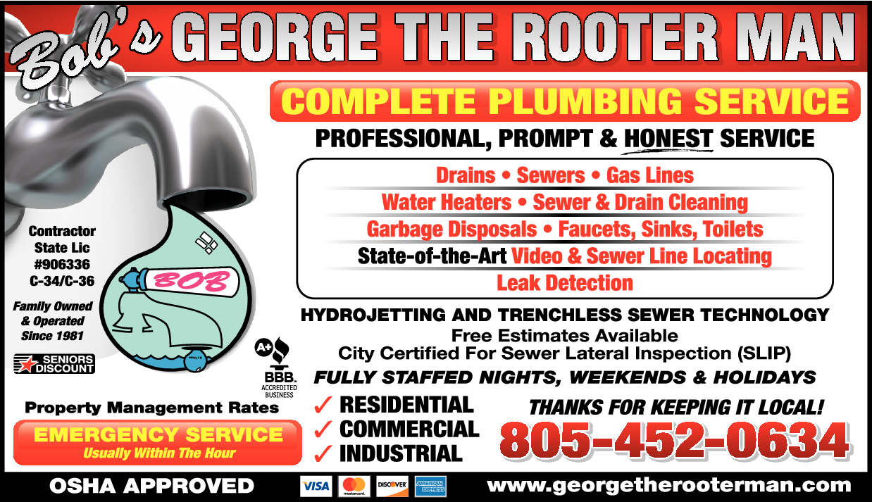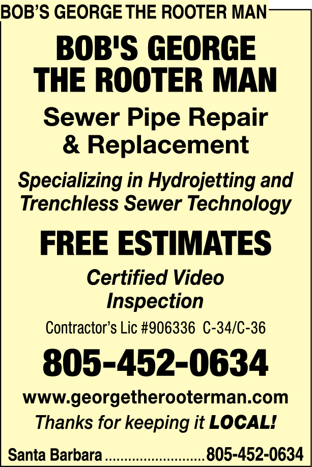 Names and Numbers Verified Garbage Disposal Equipment Dealers Pipe Inspection & Leak Locating Plumbers Drain & Sewer CleaningAt George The Rooter Man of Santa Barbara, we understand that most people ignore their plumbing until it is broken, in the home and at commercial properties. And who can blame them? Dealing with a clogged toilet is unpleasant enough, although quite manageable, but what about bro…